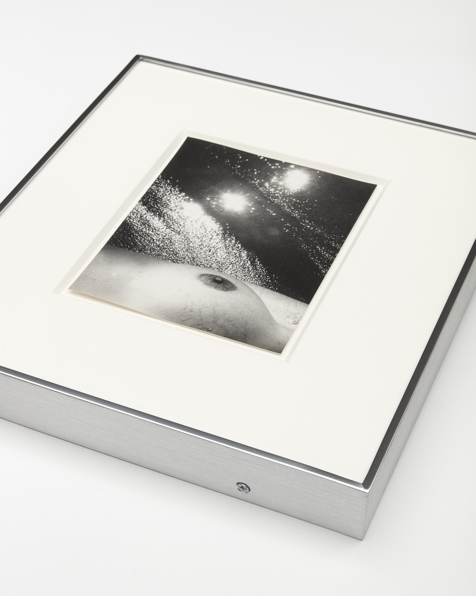 The Onze Nus Par series both lavishly celebrates the vitality of life and slightly abstracts the female form. Situated on the seashore, the nudes are dappled with sparkling sunlight and lapped by the cleansing sea water. Clergue crops out the head and face of the inviting body, leaving the form in a state of anonymity that lends it to universality; these photographs deny any separation between the nude feminine body and nature itself.