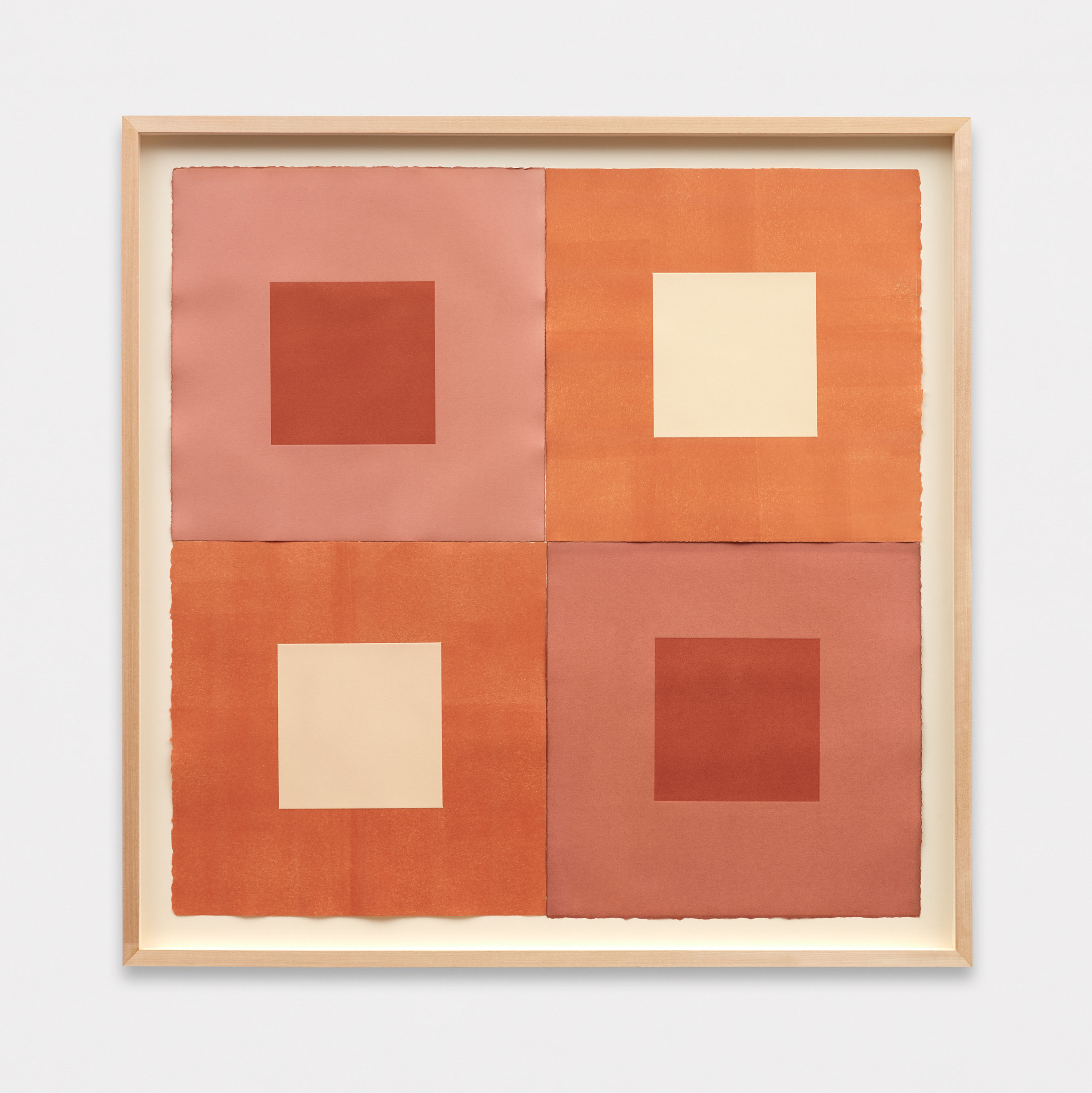 With “Time as Texture,” Humphreys reconsiders the linearity of an artist’s ‘progress.’ In many of the works presented here, the artist incorporates materials from a vast archive of what she terms her “artifacts:” experimental fragments, color samples and other reference pieces. As a printmaker, Humphreys is inherently fluent in the loopy and repeated language of imprints and layers. For example, she makes a “ghost print” after each initial printing, which pulls the last inks off of her print matrix and makes a pale “double” of the works in her flat files. Literally weaving and quilting these myriad elements together, the artist takes up her rigorous and intricate relationship with process as a material unto itself. In this way, she calls our attention to time’s connective web-shaped form, plugging us into recurring ideas and themes from our past experience that will inform (and reinform) our present and future.